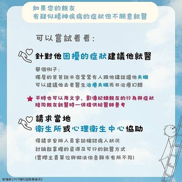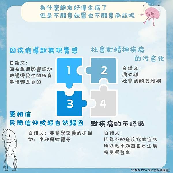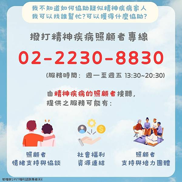 「我覺得我的家人心理生病了,但就是不願意看醫生,我們真的好累..」、「為什麼不能強制讓他住院治療呢」、「我要和誰討論才能知道要怎麼和我罹患精神疾病的家人相處呢」
