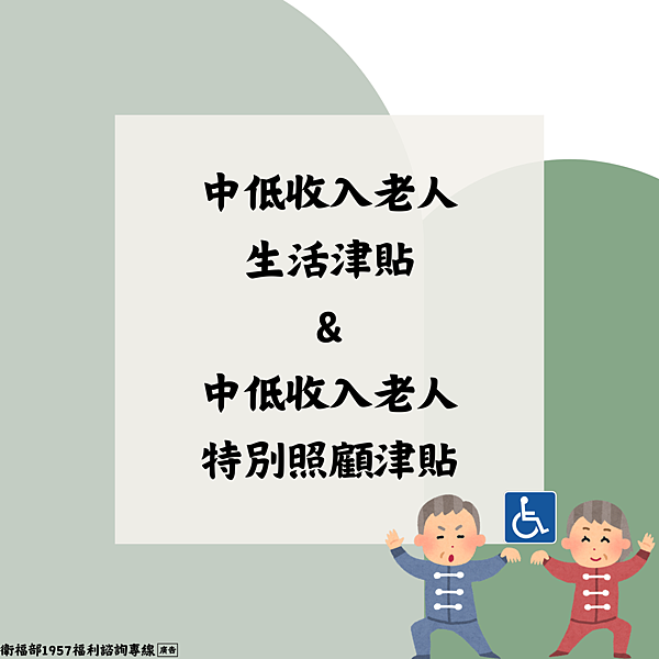 讓我們來一起了解中低收入老人生活津貼、中低收入老人特別照顧津貼吧~