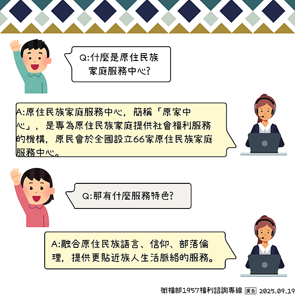 有福利相關問題,可撥打1957福利諮詢專線(免付費)或使用線上諮詢,將由專業社工為您服務!