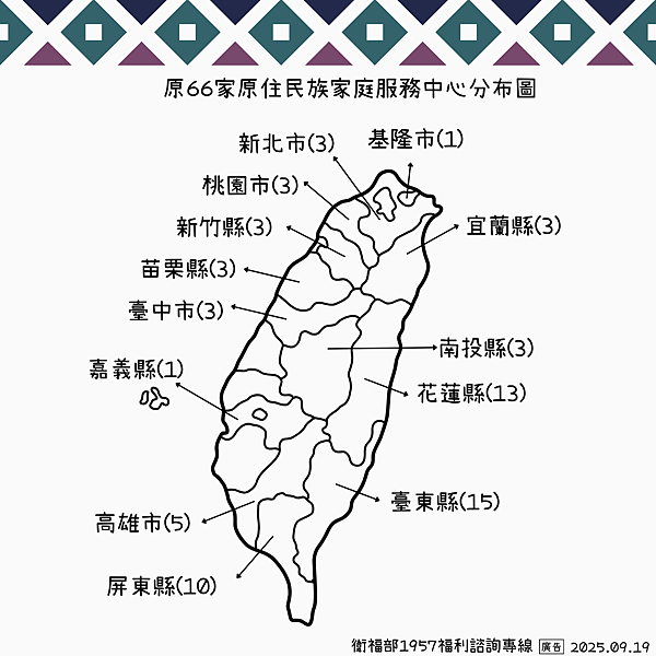 ▍全台原住民族家庭福利服務中心分布圖